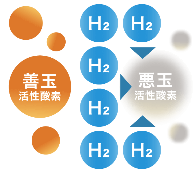 つまり水素は、悪玉活性酸素だけを取り除き「老化や病気を遠ざける力」を持つ物質なのです。