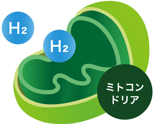 水素原子は非常に小さく軽いため、細胞の中のミトコンドリアの内部まで入り込み、ミトコンドリアのエネルギーの産生を阻害する悪玉活性酸素を選択的に安全に消去します。